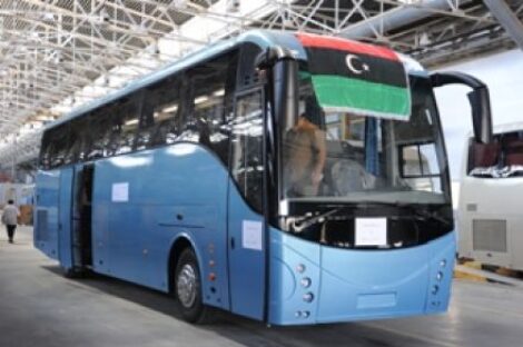 احتفلت وزارة الصناعة بالحكومة الانتقالية فى ليبيا يوم الاحد بالانتهاء من تصنيع اول حافلة للركاب بمصنع الشاحنات والحافلات بتاجوراء...