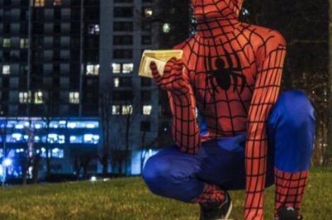 “الرجل العنكبوت” أو “سبايدر مان” هو شاب عشريني يشتري الفطائر والحليب من المتاجر على حسابه الخاص ويوزعها على المشردين...