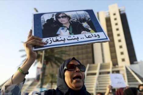 العربي الجديد انتصار الحصائري، عضو في حركة تنوير الثقافية والاجتماعية، وشاركت في مظاهرات ضد المليشيات (وجدت مقتولة رمياً بالرصاص...