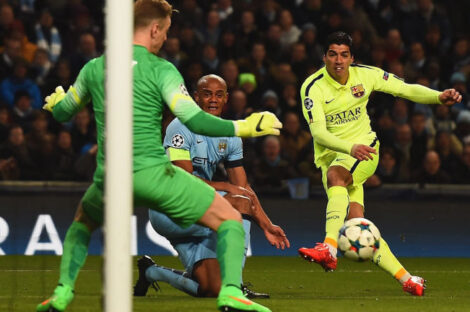 وضع المهاجم الدولي الاوروغوياني لويس سواريز فريقه برشلونة الاسباني على مشارف الدور ربع النهائي بتسجيله هدفي الفوز على مضيفه...