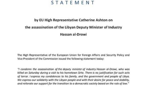 نددت الممثلة الأعلى للسياسة الخارجية بالاتحاد الأوروبي كاترين آشتون مساء اليوم باغتيال وكيل وزارة الصناعة بليبيا حسن الدروعي الذي...