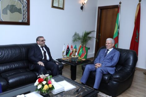 التقى رئيس المجلس الأعلى للدولة خالد المشري، خلال زيارته إلى المملكة المغربية، الأمين العام لاتحاد المغرب العربي الطيب البكوش....