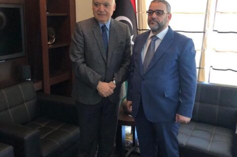 التقى رئيس المجلس الأعلى للدولة خالد المشري، الأحد، الممثل الخاص للأمين العام للأمم المتحدة في ليبيا غسان سلامة. وتم...
