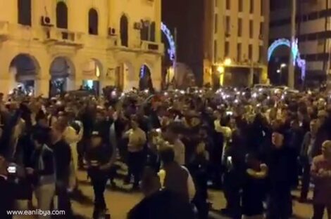 احتجاجًا على هجوم قوات حفتر على العاصمة.. آلاف الطرابلسية يتظاهرون بميدان الشهداء