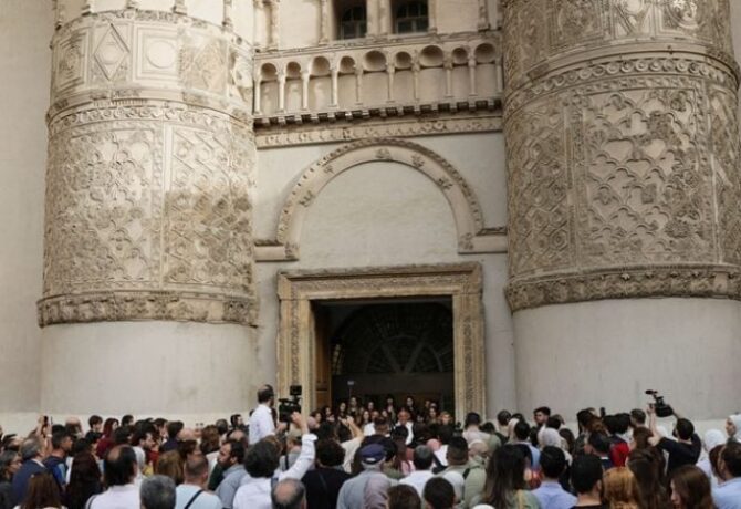 ظهر في ساحات الجامع الأموي بدمشق صندوق مغطى بقماش أخضر، منقوش عليه شعار المملكة العربية السعودية (السيفان والنخلة)، إلى جانب…