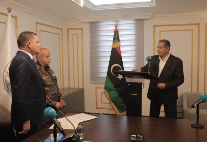 أدى رئيس وأعضاء هيئة المحكمة العسكرية العليا الجدد اليمين القانونية أمام رئيس الحكومة عبدالحميد الدبيبة بصفته وزيرا للدفاع. وفي كلمة…