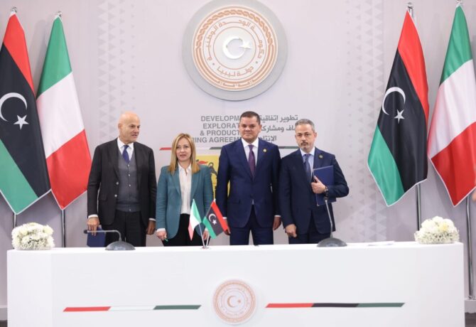 وقع رئيس مجلس إدارة المؤسسة الوطنية للنفط فرحات بن قدارة، اليوم السبت، اتفاقية مع رئيس شركة “إيني” الإيطالية كلاوديو ديسكالزي،…
