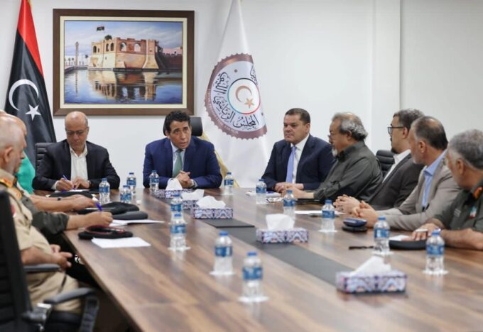 بحث رئيس المجلس الرئاسي محمد المنفي بصفته القائد الأعلى للجيش الليبي الخميس خلال اجتماع استثنائي لمستجدات الأوضاع الأمنية والعسكرية في…
