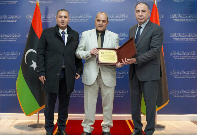كرّم وزير الخارجية بالإنابة في حكومة الوحدة الوطنية الطاهر الباعور، السفير الليبي لدى جزر القمر عبدالحليم عبدالونيس الشهابي، بمناسبة انتهاء…
