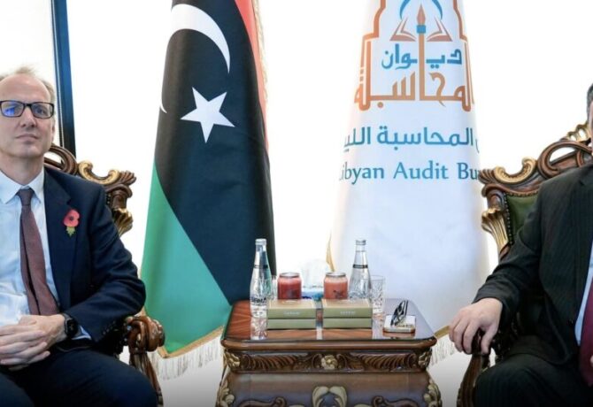 التقى رئيس ديوان المحاسبة، خالد شكشك، السفير البريطاني الجديد لدى ليبيا، مارتن رينولدز، في زيارة تعارف هي الأولى له إلى…