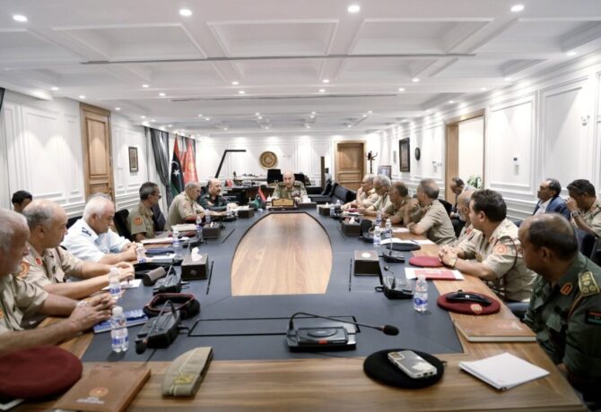 عقد رئيس الأركان العامة للجيش الليبي، الفريق أول ركن محمد الحداد، اجتماعًا بمكتبه ضم أمين عام رئاسة الأركان العامة، ومدراء…