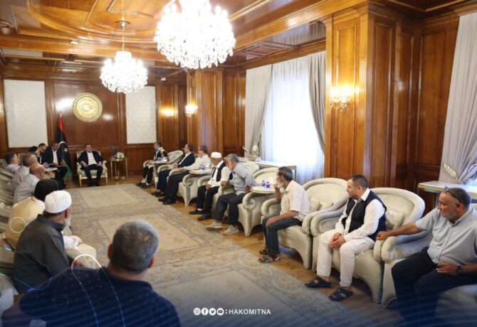 بحث رئيس حكومة الوحدة الوطنية عبد الحميد الدبيبة، صباح الخميس، مع وفد من أعيان ومشايخ بلدية تاجوراء، الأوضاع السياسية والأمنية…