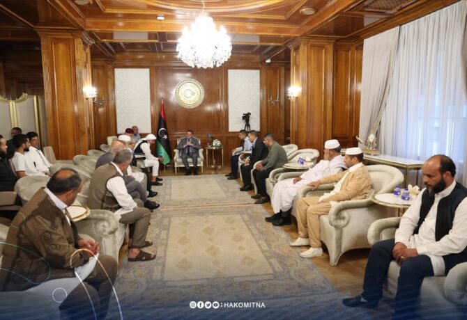 الدبيبة يستقبل أعيان ترهونة ويؤكد دعم الحكومة لكشف مصير المغيبين وتعزيز الاستقرار