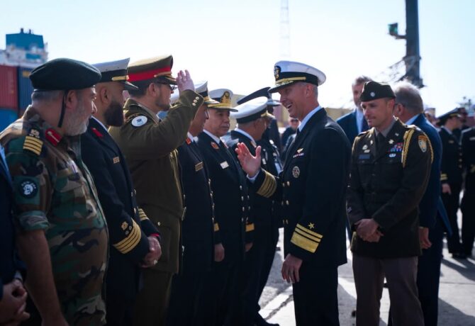 عقد نائب الأدميرال “جيه تي أندرسون”، قائد الأسطول السادس للبحرية الأمريكية، أثناء زيارة السفينة الأمريكية “يو إس إس ماونت ويتني”…