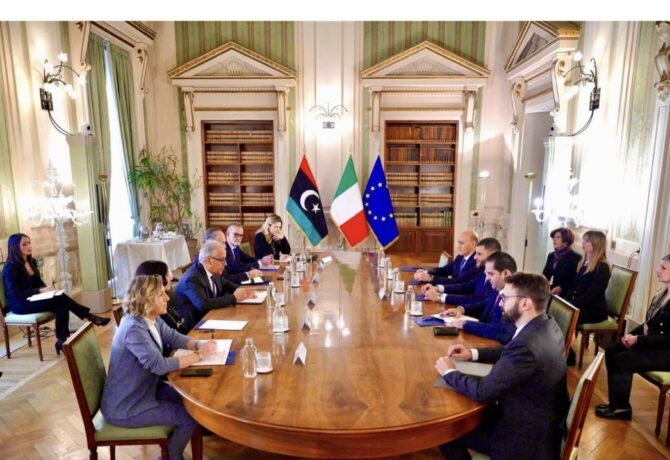عقد وزير الداخلية المكلف بحكومة الوحدة الوطنية لواء عماد الطرابلسي، اجتماعاً مع نظيره الإيطالي ماتيو بيانتيدوزي، وذلك بمقر وزارة الداخلية…