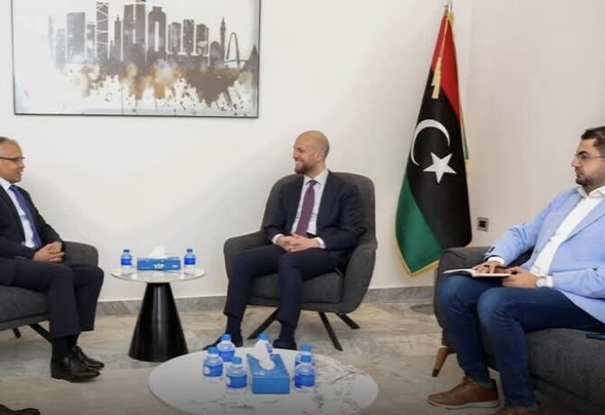 استقبل وزير الدولة للاتصال والشؤون السياسية، وليد اللافي، السفير الفرنسي لدى ليبيا، مصطفى مهراج.وتناول اللقاء “مستجدات الأوضاع السياسية على الصعيدين…