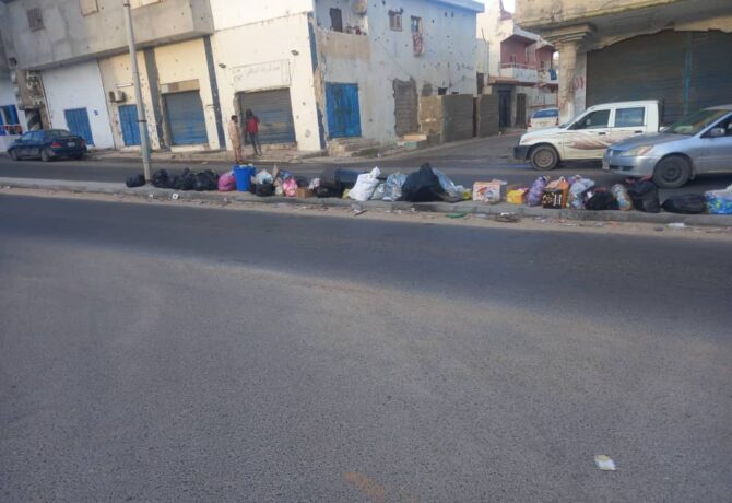 تكدس القمامة في شوارع سرت بسبب تأخر صرف رواتب العمال