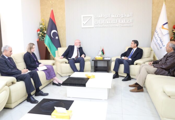 استقبل رئيس مجلس المفوضية الوطنية العليا للانتخابات عماد السايح، اليوم الأحد، بديوان المفوضية في طرابلس، سفير بريطانيا لدى ليبيا مارتن…