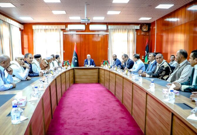 رئيس الحكومة الليبية يستقبل وفداً يضم أعيان وأهالي وادي زمزم.