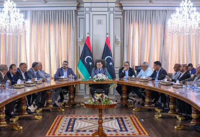 عقد رئيس حكومة الوحدة الوطنية عبد الحميد الدبيبة، اليوم الخميس بديوان مجلس الوزراء طرابلس، لقاء موسعًا مع عمداء بلديات (مناطق…