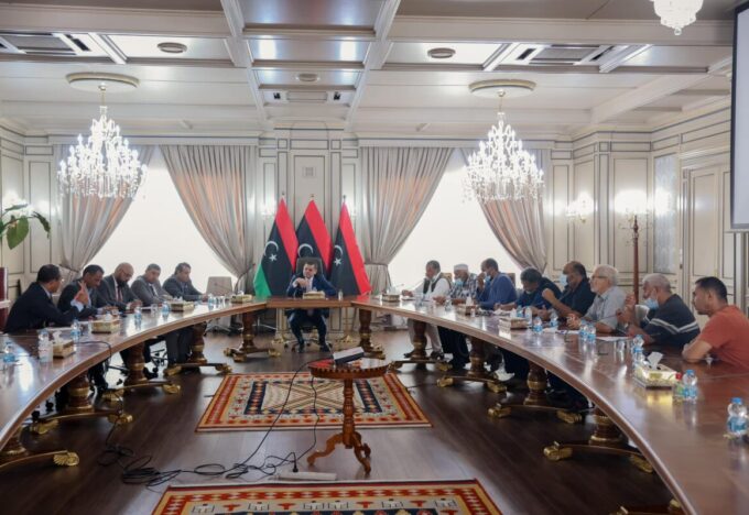 التقى رئيس حكومة الوحدة الوطنية عبد الحميد الدبيبة، اليوم الاثنين، بديوان رئاسة الوزراء في طرابلس، مع عدد من مهجري المنطقة…