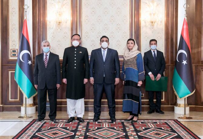 تسلّم رئيس المجلس الرئاسي الليبي الدكتور محمد المنفي، اليوم السبت، أوراق اعتماد سفير جمهورية باكستان الإسلامية لدى ليبيا رشاد جويد….