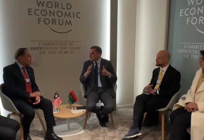 التقى رئيس حكومة الوحدة الوطنية، عبدالحميد الدبيبة، رئيس وزراء ماليزيا، أنور إبراهيم، على هامش، أعمال منتدى الاقتصاد العالمي دافوس 2025….
