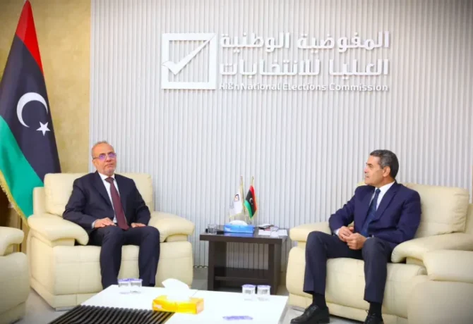 استقبل رئيس مجلس المفوضية الوطنية العليا للانتخابات، الدكتور عماد السايح، اليوم الأحد، النائب بالمجلس الرئاسي عبد الله اللافي، في ديوان…
