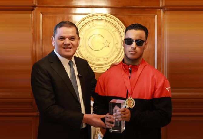 «الدبيبة» يكرّم البطل العالمي «أنس زقلم»