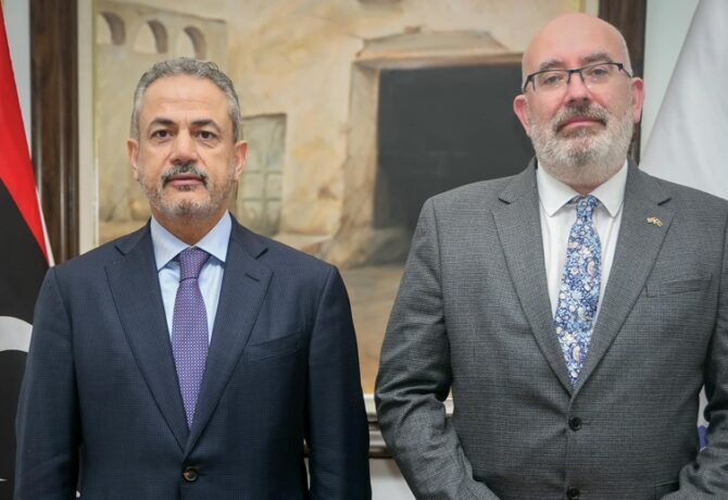 ناقش رئيس المؤسسة الوطنية للنفط فرحات بن قدارة، مع سفير المملكة المتحدة في ليبيا “مارتن لونغدن”، مجالات التعاون المشترك بين…