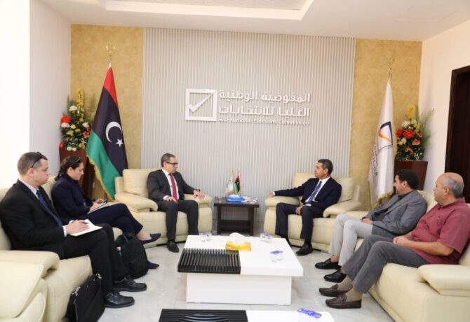 استعرض رئيس مجلس المفوضية الوطنية العليا للانتخابات عماد السايح مع القائم بأعمال السفارة الأمريكية لدى ليبيا جيريمي برنت، مواقف الأطراف…