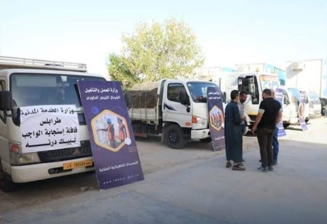 أعلنت وزارة العمل والتأهيل، أمس الإثنين، إرسال قافلة مساعدات مشتركة مع وزارة الخدمة المدنية والمركز الليبي الكوري، إلى المناطق المتضررة…