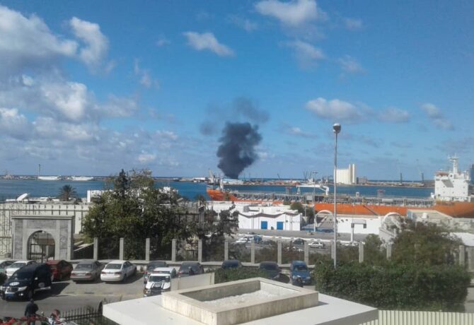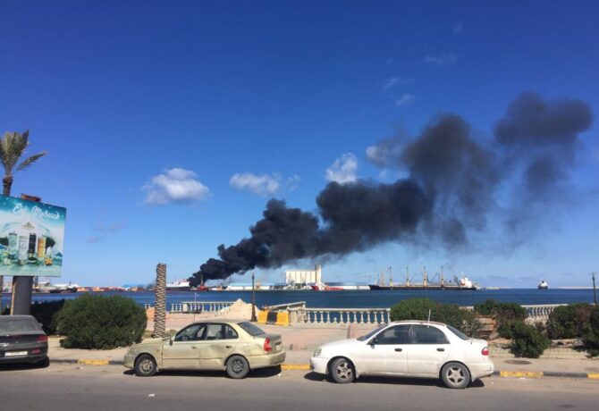 نشرت شركة متخصصة في التقاط صور بالأقمار الصناعية، صورة توضح تفاصيل قصف قوات حفتر لميناء طرابلس البحري. وأفادت شركة “إميدج…