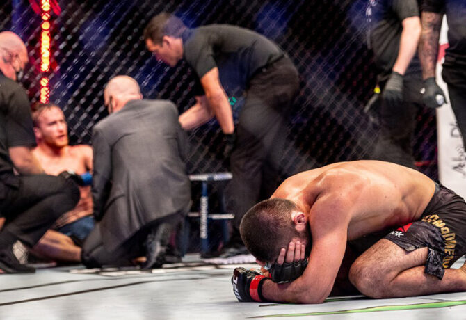 عقب فوز المقاتل حبيب نورماغوميدوف على خصمه جاستن جايثجي في عرض UFC254، رفض البطل الاحتفال داخل الحلبة كعادته.
