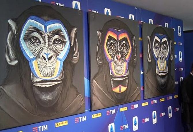 اعتذر رئيس رابطة دوري الدرجة الأولى الإيطالي لكرة القدم بعد استخدام عمل فني يشمل ثلاث لوحات متجاورة لوجوه قرود في…