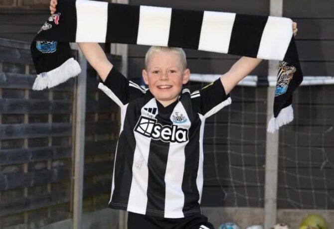 تعرض مشجع لنادي نيوكاسل يبلغ من العمر تسع سنوات لموقف محرج بعد أن التقطه الكاميرا وسط آلاف المشجعين وهو يحتفل…