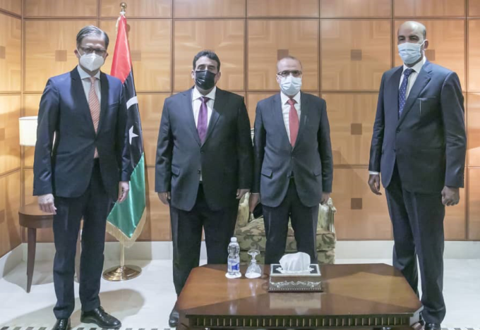 استقبل رئيس المجلس الرئاسي الجديد محمد المنفي، وعضوي المجلس عبدالله اللافي، وموسى الكوني، اليوم الثلاثاء، بمدينة طرابلس، السفير الألماني لدى…