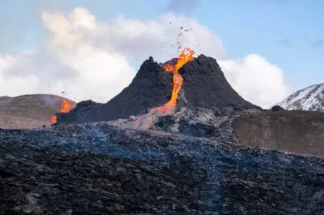 مشهد اللهب والحمم وسحب الدخان المظلم حل مكان مشهد الوادي الأخضر على مقربة من ريكيافيك حيث كشف الثوران البركاني الجاري…