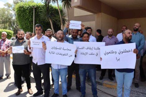 نظم مجموعة من موظفي وزارة الخارجية بحكومة الوحدة الوطنية، اعتصاماً أمام مكتب الوزيرة نجلاء المنقوش، للمطالبة بحق الأسبقية في الإيفاد….