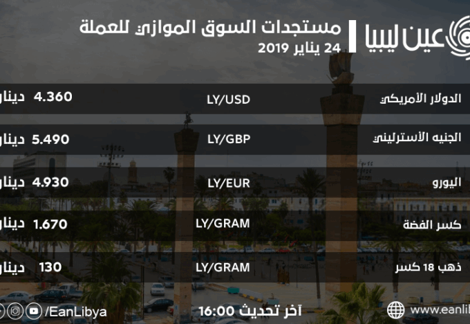 انخفض سعر صرف الدولار الأمريكي أمام الدينار الليبي في السوق الموازية «السوداء» اليوم الأحد بشكل ملحوظ، حيث وصل سعر الصرف…