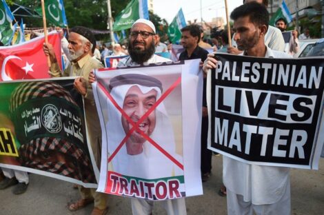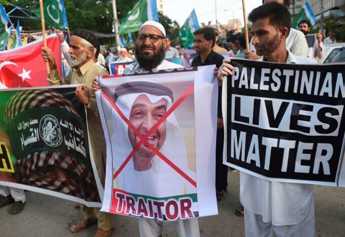 احتجاجًا على إعلان الإمارات والاحتلال الإسرائيلي تطبيع العلاقات بينهما رسميًا، بما في ذلك فتح سفارات في أراضي البلدين، تظاهر عشرات…