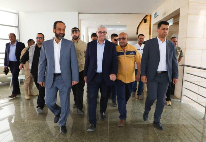 الرئيس الحكومة الليبية فتحي باشاغا والوفد المرافق له يُجري زيارة تفقدية لبلدية الجفرة.
