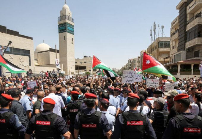ذكرت وكالة “رويترز”، أن “شرطة مكافحة الشغب الأردنية اعتدت بالضرب واعتقلت عشرات المتظاهرين الذين حاولوا السير نحو السفارة الإسرائيلية الخاضعة…