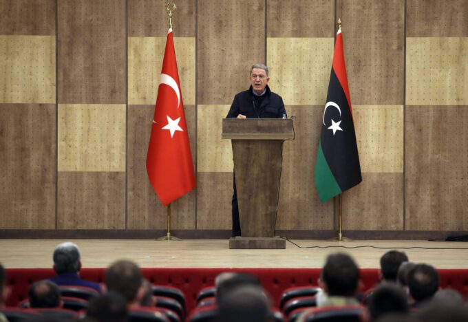 حذر وزير الدفاع التركي خلوصي أكار، من وصفه بـ”الجنرال الانقلابي” خليفة حفتر وداعميه من مغبة أي محاولة لاستهداف القوات التركية في ليبيا.