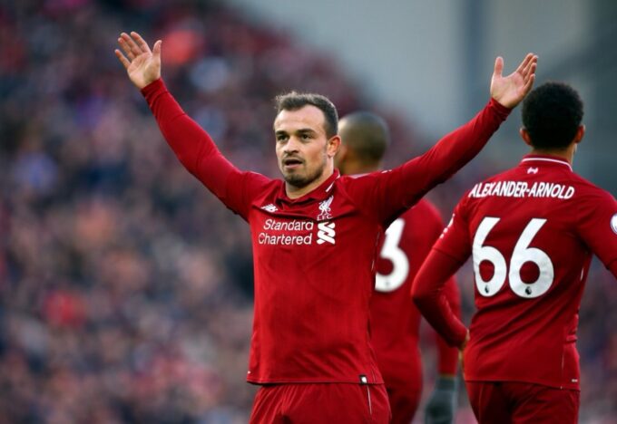 قاد السويسري شيردان شاكيري لاعب وسط نادي ليفربول فريقه لصدارة الدوري الإنكليزي الممتاز بتسجيله هدفين ضد فريق مانشستر يونايتد في…
