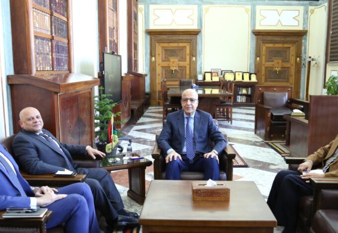 بحث رئيس لجنة إدارة غرفة التجارة والصناعة والزراعة طرابلس فرج دريبيل، مع القائم بأعمال السفارة المصرية في ليبيا تامر مصطفى،…