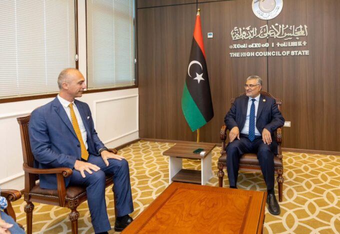 استقبل رئيس المجلس الأعلى للدولة، الدكتور محمد تكالة، صباح اليوم الخميس الموافق 11 سبتمبر 2025م، السفير الإيطالي لدى ليبيا جيانلوكا…