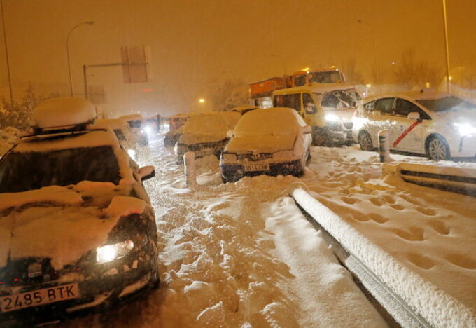 لأول مرة منذ 50 عاما الثلوج تتسبب بوقف حركة المواصلات وإغلاق مطار مدريد