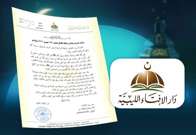 أعلنت دار الإفتاء الليبية، الثلاثاء، عن تحديد مقدار زكاة الفطر لعام 1445 هجري 2024 ميلادي. وذكرت الدار في بيان، أن…