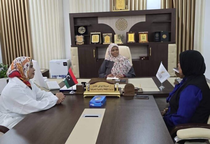 استقبلت وزيرة الثقافة والتنمية المعرفية بحكومة الوحدة الوطنية مبروكة توغي بمكتبها بديوان الوزارة بثينة رحومة الجدي مراقب التربية والتعليم ببلدية…